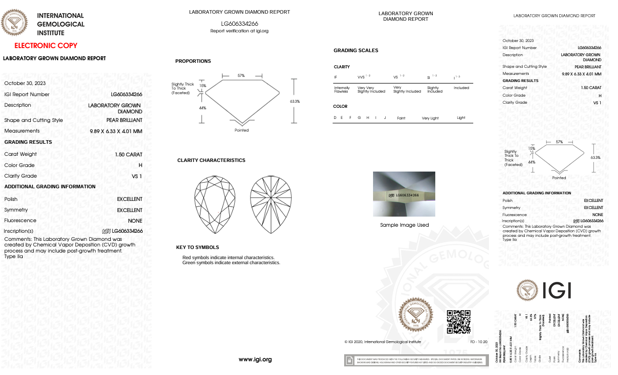| 1.5cts | Pear | H | VS1 | 38250 |